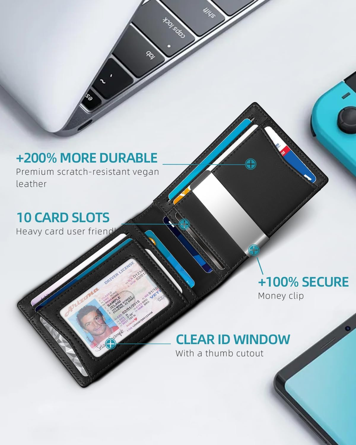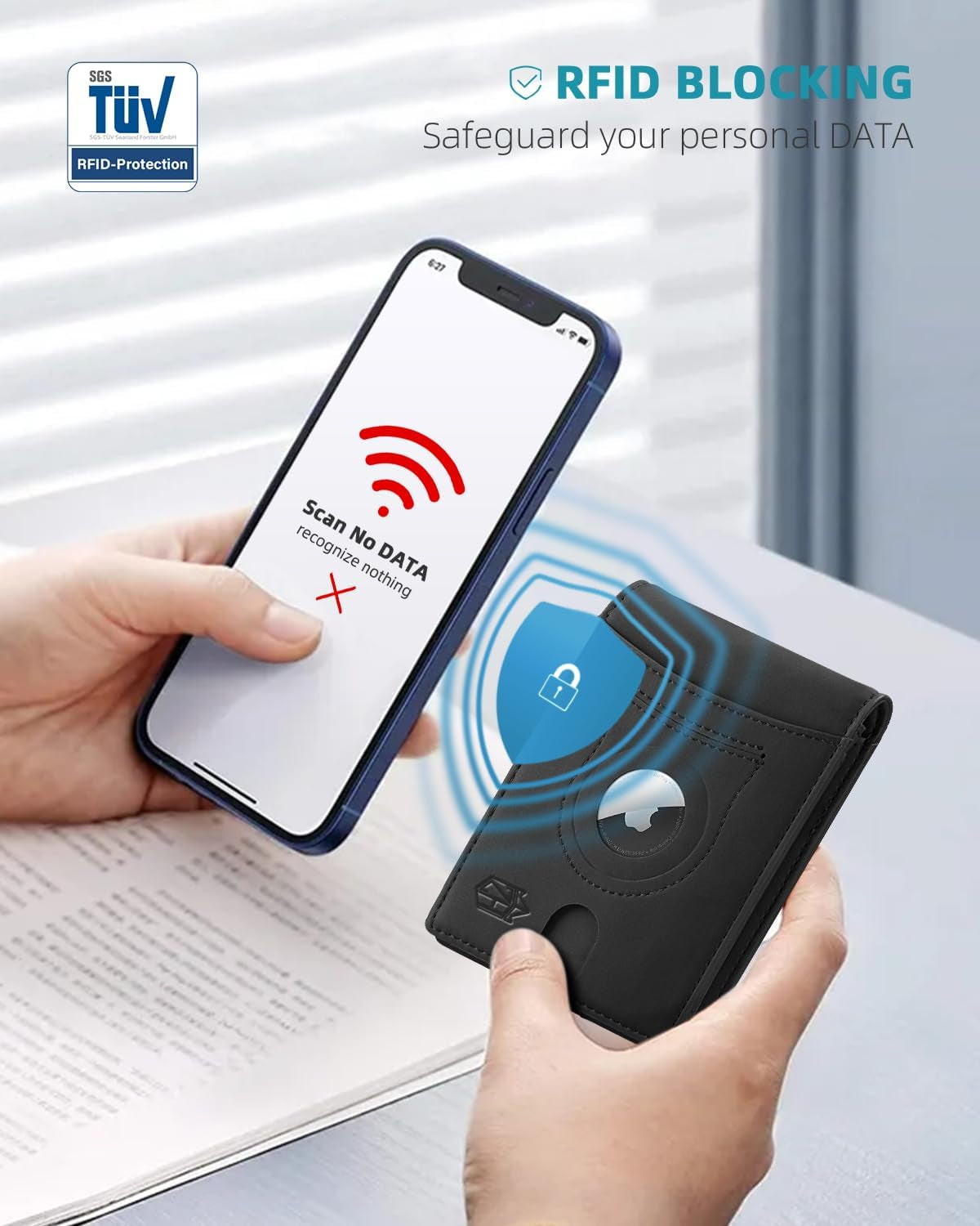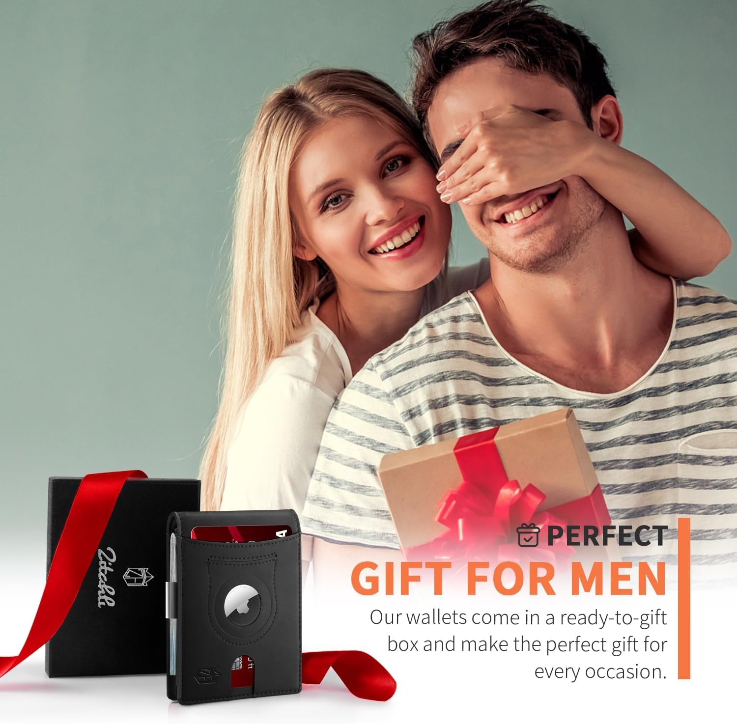 Men's Slim Bifold Wallets with Money Clip & Airtag Holder Rfid Blocking Leather Includes Gift Box