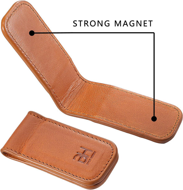 Slim Magnetic Money Clip Genuine Leather Card Holder for Men, Brown