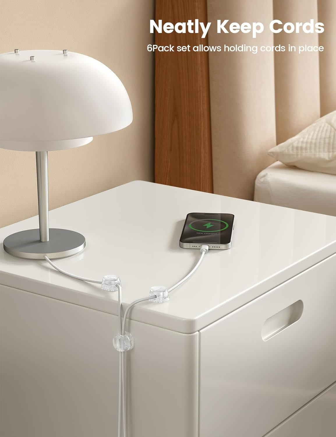 6-Pack Clear Cable Organizer Clips with Spring Lock for Chargers, Hdmi & Usb Cables