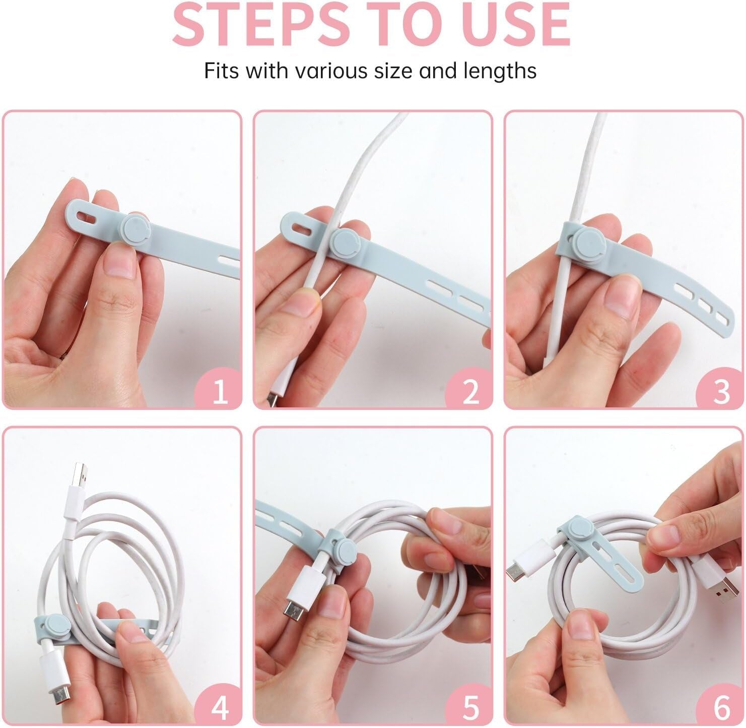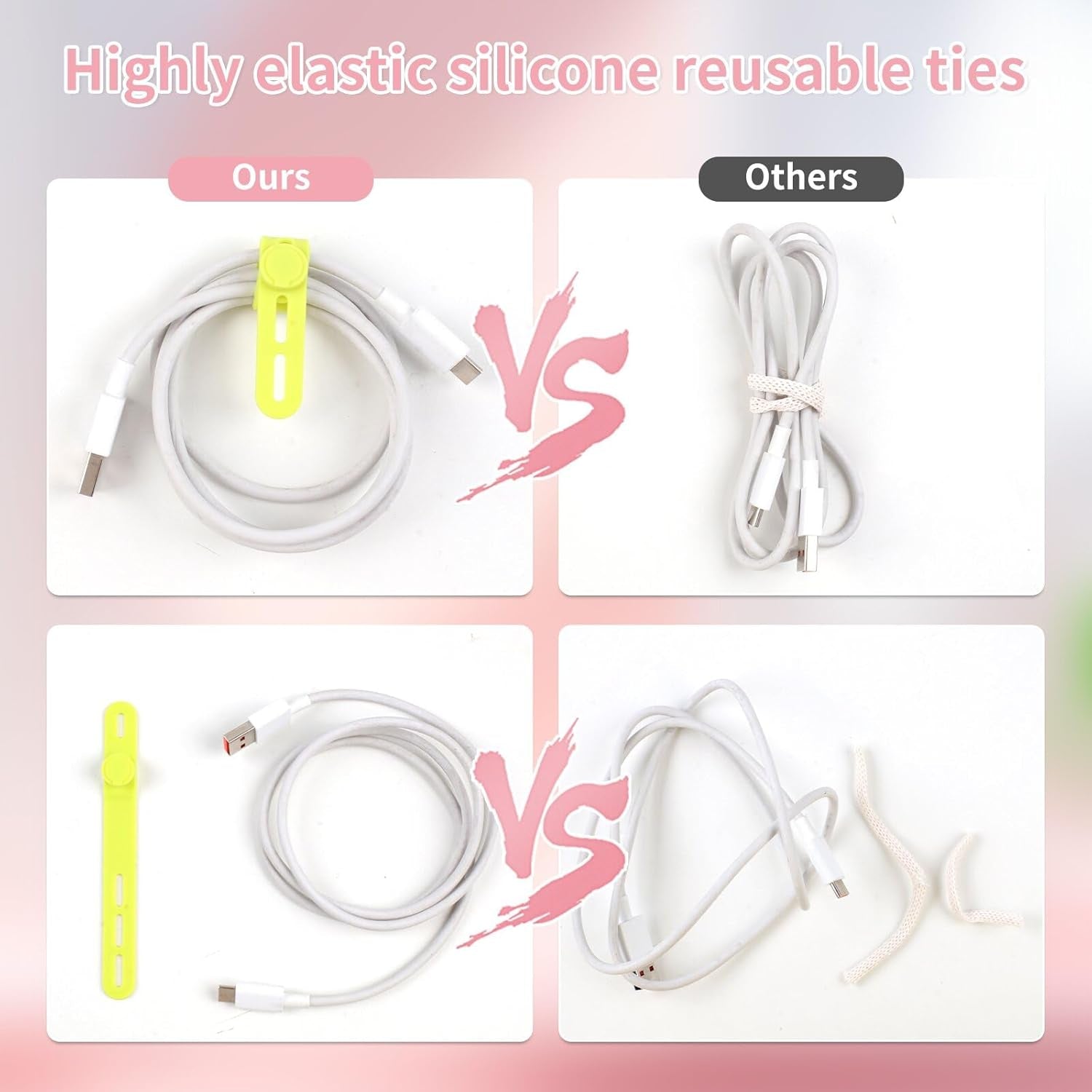 25 Pack Reusable High Elasticity Silicone Cable Ties with 3-gear Adjustable Locking Buckle, 5 Colors