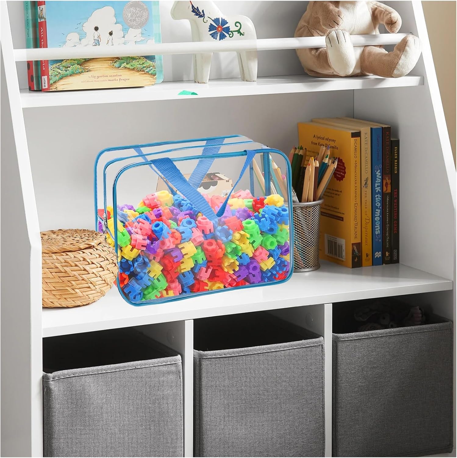 8 Pack Clear PVC Toy Storage Bags with Handles & Zippers for Toys, Books, Stationery & Crafts, 8 Colors