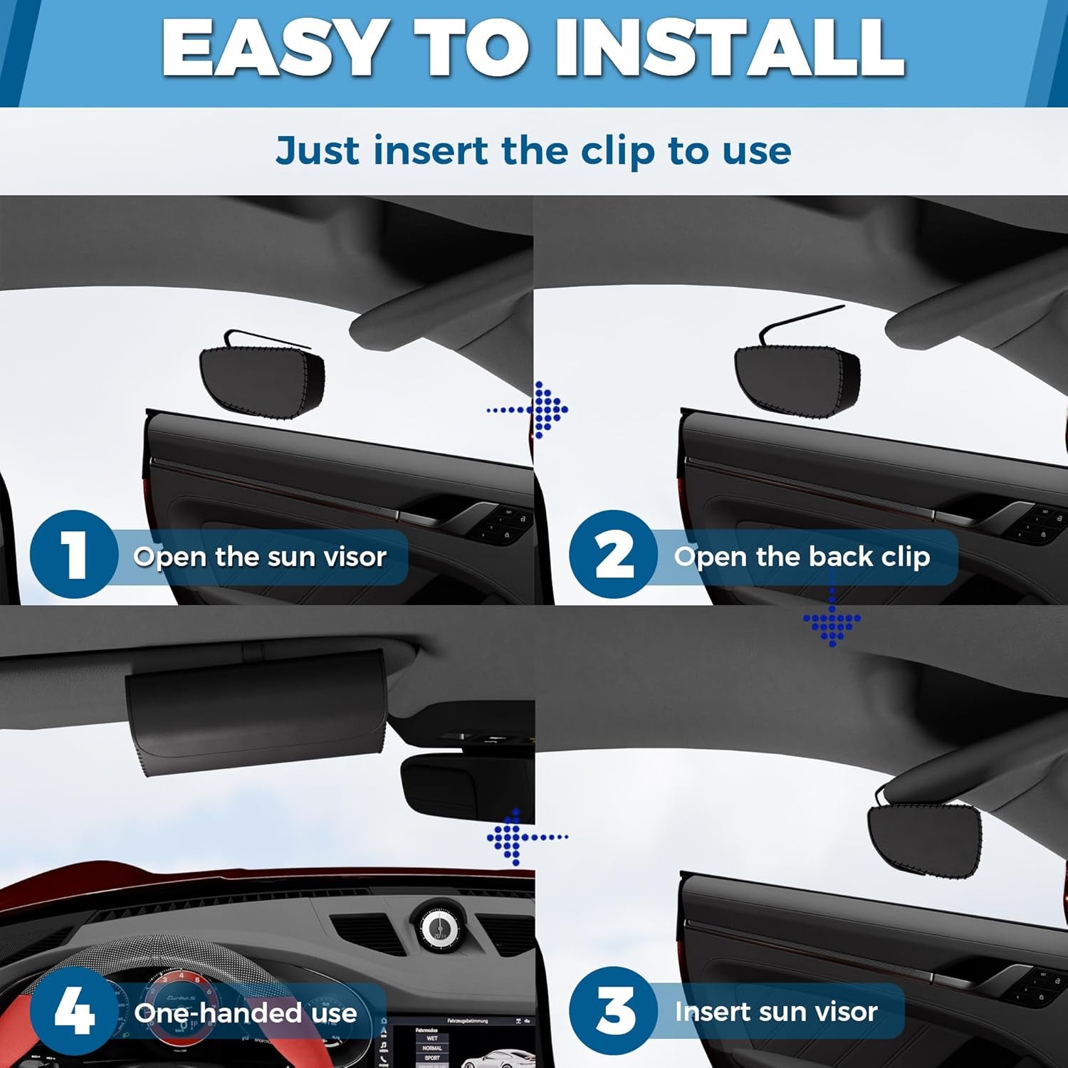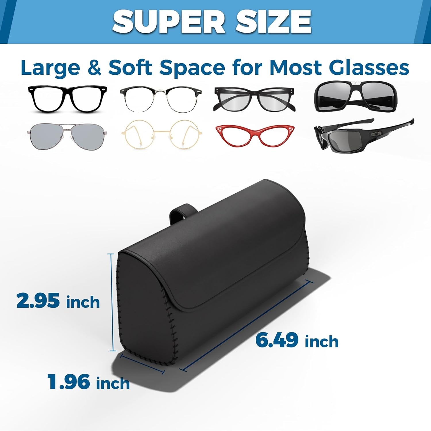 Magnetic Car Visor Leather Sunglasses Storage Case Compatible with All Car Models, Unisex, Black