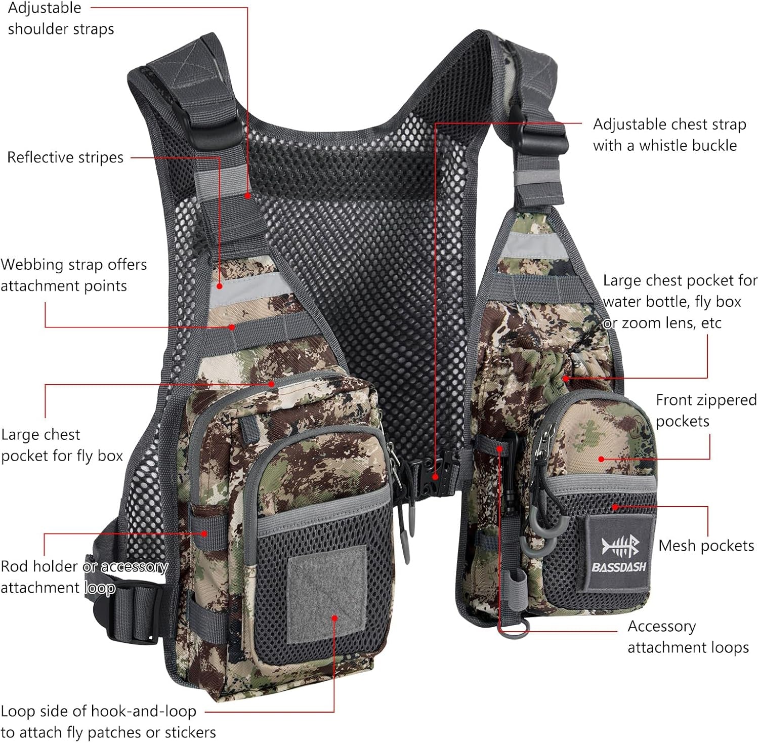 BASSDASH FV08 Ultra Lightweight Fly Fishing Vest for Men and Women Portable Chest Pack One Size Fits Most