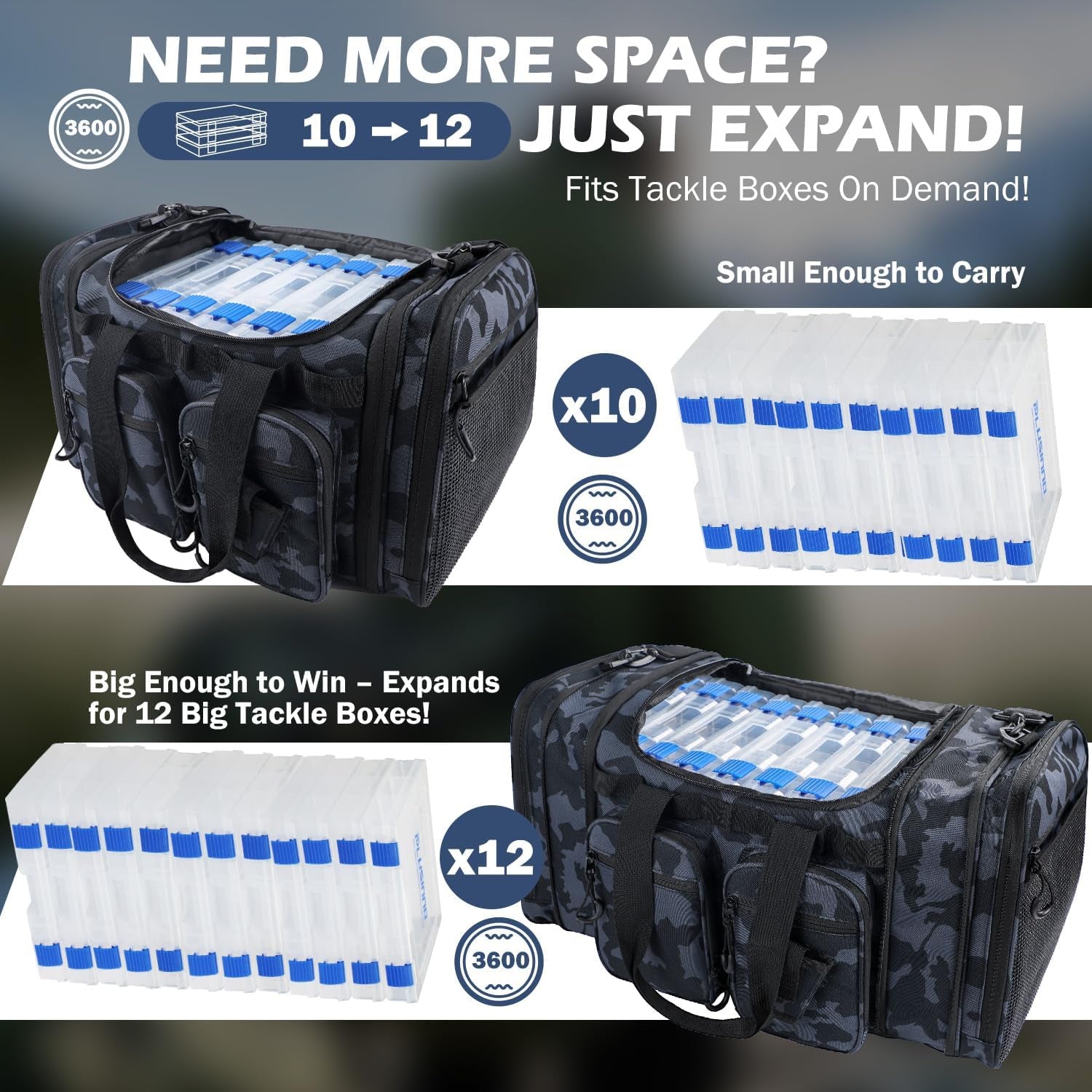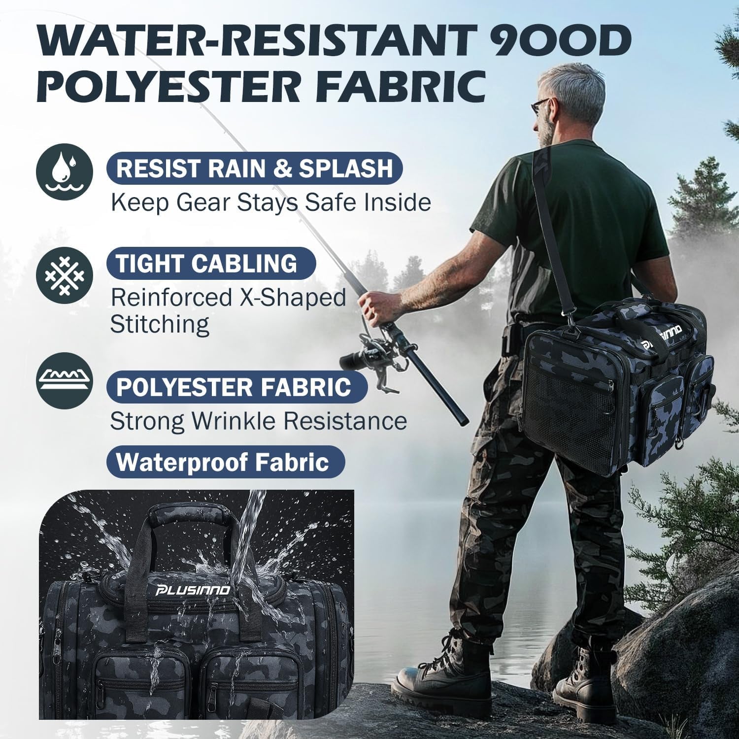 PLUSINNO Tackle Bag - Expandable Fishing Bag for Saltwater & Freshwater - Water Resistant Fishing Gear Shoulder Bag for Men, All-Purpose Carrying Bags for Outdoors