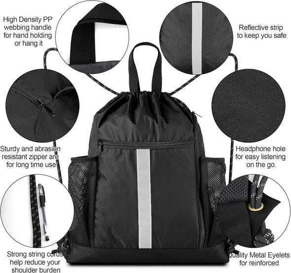 Drawstring Backpack With Shoe Compartment & Two Water Bottle Holder Sports Gym Bag