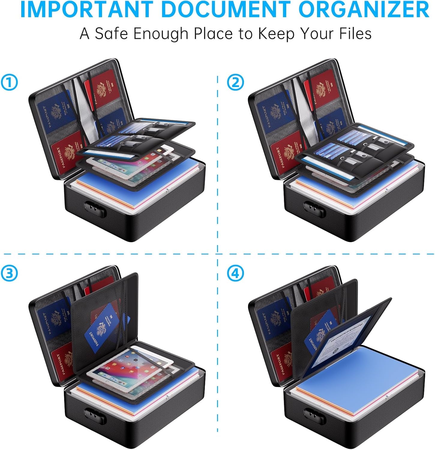 5200°F 8 Layers Fireproof Document Box with Lock Home Travel Safe