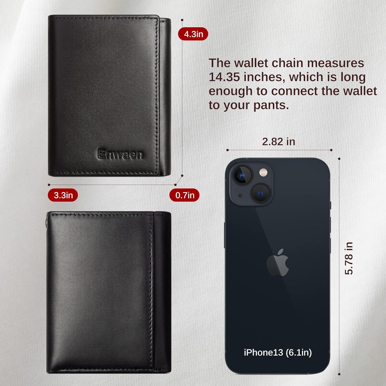 RFID Genuine Leather Trifold Chain Wallet With Anti - Theft Chain
