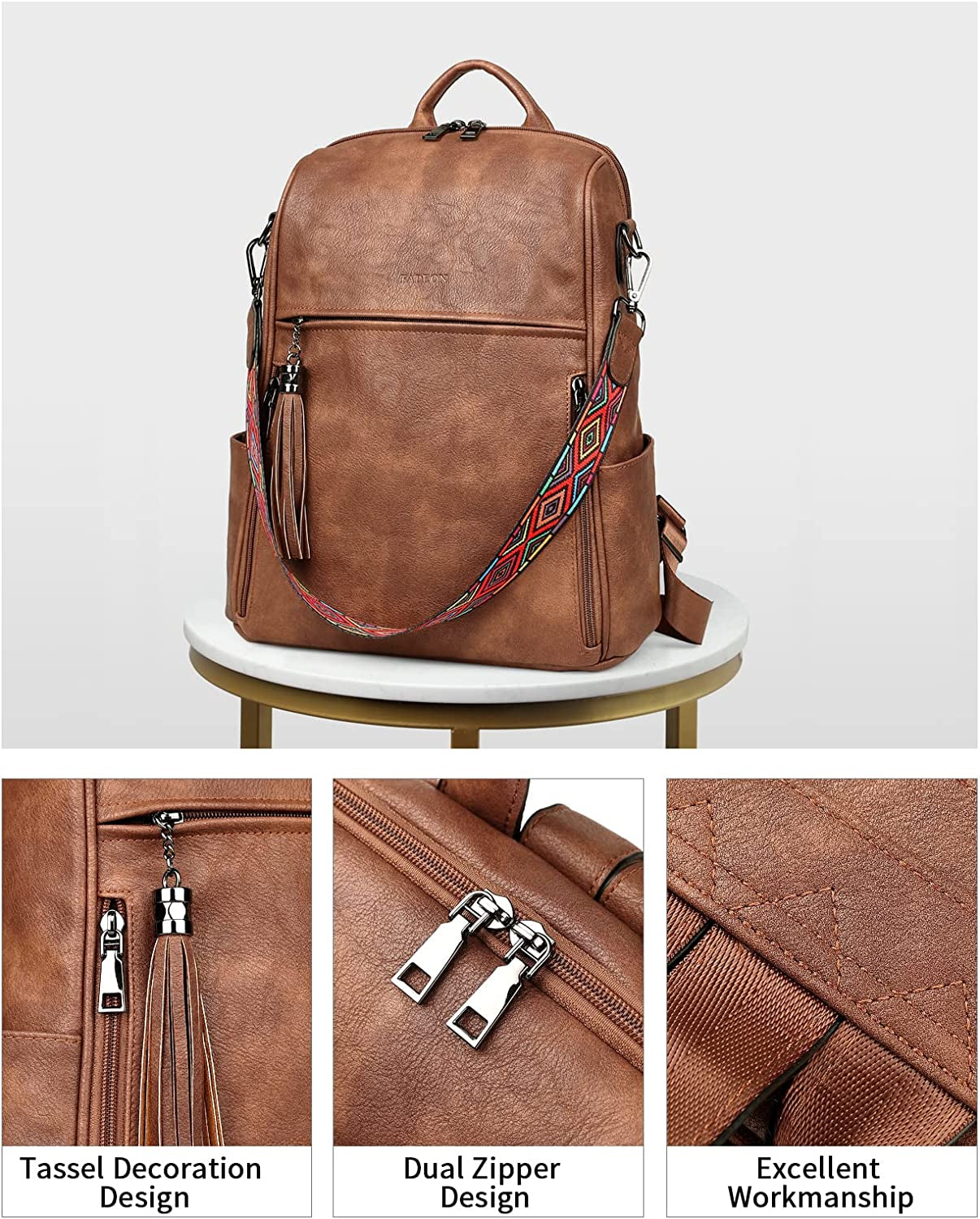 PU Leather Travel Backpack for Women Designer Tassel Shoulder Bag