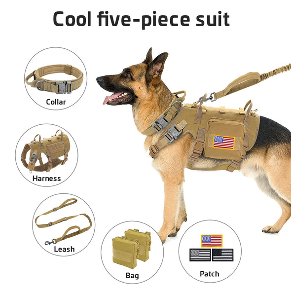 Forestpaw No Pull Tactical Dog Harness Set, Adjustable for Medium Large Dogs - Khaki M