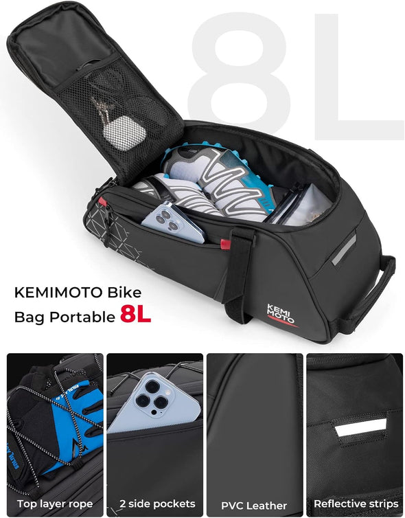 8L Water Resistant Bicycle Trunk Bags with Two Side Pockets & Pvc Reflective Strips
