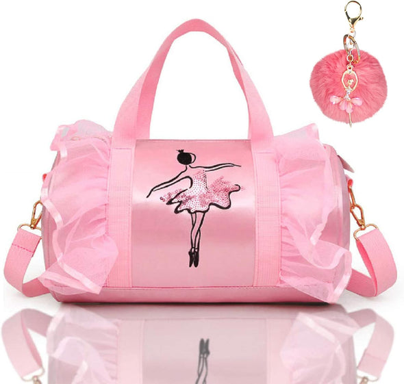 Ballet Dance Bag with Key Chain & Pink Plush Charm - Pink
