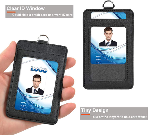 PU Leather ID Card Holder with Lanyard for Office, School