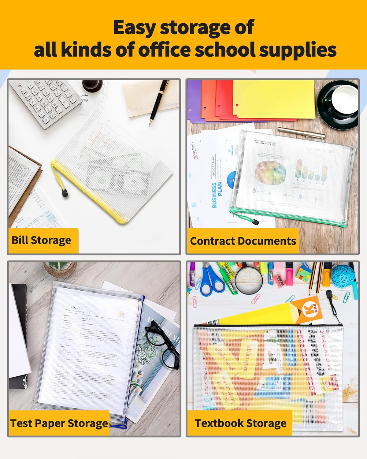 SUNEE Plastic Mesh Zipper Pouch 9X13 in (6 Colors, 18 Packs),Extra Large Water-Resistant Zip Bag for School Office Supplies, Puzzles & Games Organizing Storage